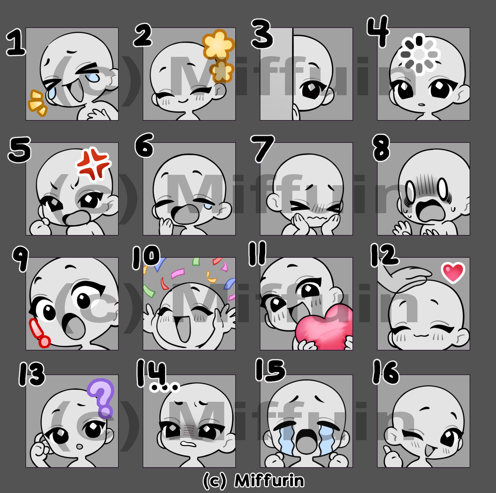 | Base price $11 per emote Emotes drawn on bases made by several lovely and charitable artists. You can view the bases here: Bases Examples |